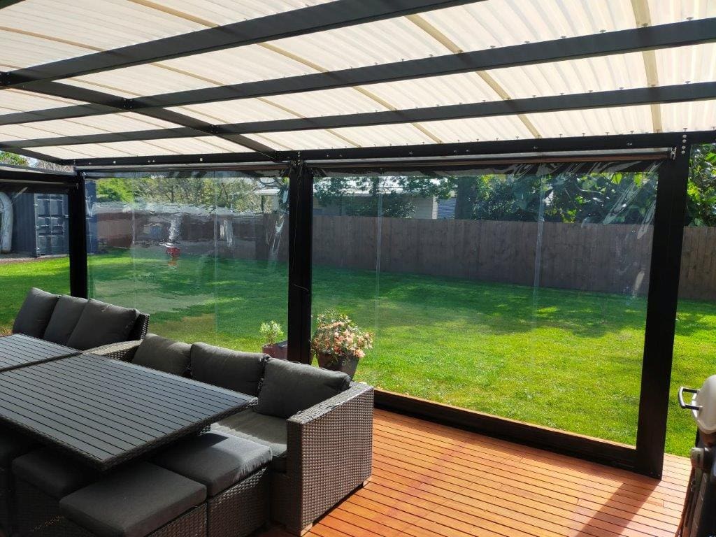 - Clear PVC: Perfect for visibility, weather resistance, and temperature control, Clear PVC lets you enjoy the outdoors in any season.