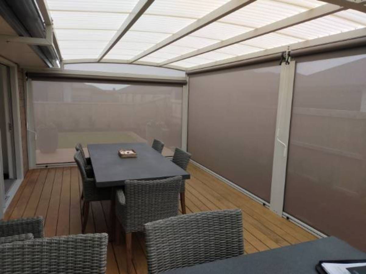 - Privacy Outdoor Screens: To enhance the overall appeal of the outdoor space and create a more private atmosphere, the use of drop-down screens is an excellent choice. We recommended a taupe mesh for the screens as it complements the natural colours of the house, creating a seamless and visually appealing integration with the surroundings. These screens can be raised or lowered as needed to control privacy and airflow.